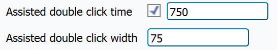 These settings relate to assisted double click for a device: assisted_double_click.time_ms This is a time in milliseconds. assisted_double_click.width_pixels This is a screen measurement in pixels.