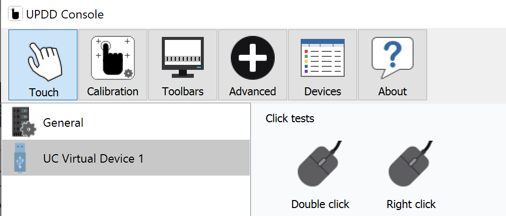 The UPDD Console allows you to test double click in the Touch, Device dialog: