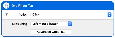 Under MacOS UPDD Commander One Finger Tap gesture will normally be set to Left click: